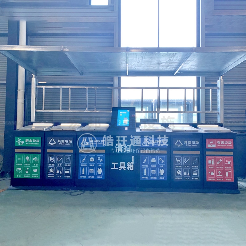 6分類智能垃圾箱,箱體高度1100mm,投口門(mén)為上開(kāi)啟,可感應(yīng),可刷卡開(kāi)啟,多種投放模式,方便用戶投遞,安裝27寸觸摸屏,可查看用戶投遞信息,存儲(chǔ)至云端,用戶也可選擇投遞廣告或者視頻媒體宣傳。